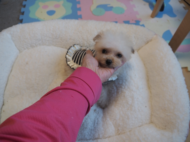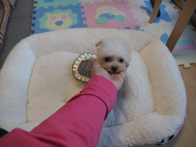 我が家の2匹目に志智ブリーダーさんからお迎えすることになりました。 こちらの都合で最終決定までかなり時間をかけてしまいましたが、お電話でもお忙しい中丁寧に応えていただきました。 写真より可愛く、小さく、愛嬌もあって、いいご縁をいただきました。 我が家の一員として大切にして育てていきますね。 最後までありがとうございました。(福岡県 女性)