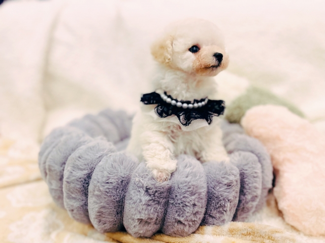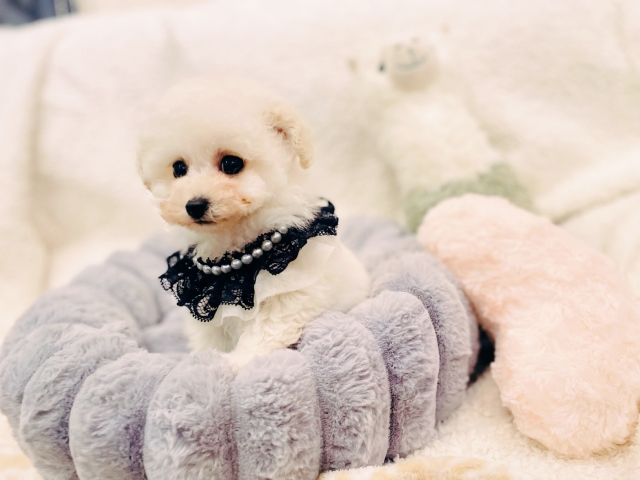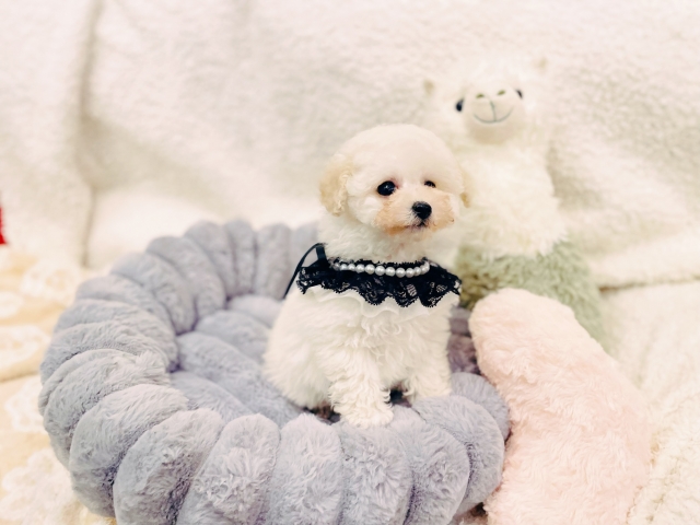 | コメント | お写真通りまん丸くりくりな大きな瞳と詰まったマズル(鼻口)が可愛すぎます。 両親共ティーカップサイズで健康優良児です 全体的に体パーツが詰まって小ぶりなコンパクトサイズ ※プードルは抜け毛がほとんどありませんので小さなお子様のいるご家庭にはオススメの犬種になります。 性格はとっても甘えん坊さんでとても人懐っこい子なため 初めてワンちゃんを飼われる方にもおすすめですよ! 現在,社会勉強中で他のワンコとも仲良く出来て,人見知りもなく優しいいい子に 育ってくれてます! 詳しくはお気軽にお問合せ下さい 繁殖不可。一般家庭様のみお譲りします |