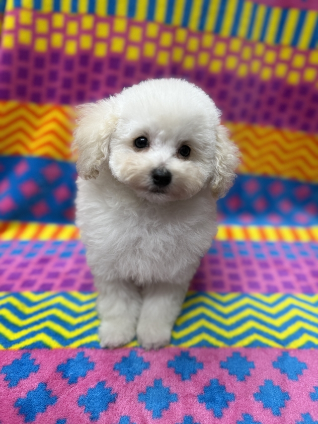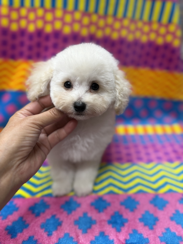 | コメント | 父犬 JKCチャンピオン 父の母は AM.BISS.JKCチャンピオン です。 日本、アメリカで優秀な成績で活躍しました。 可愛く綺麗なお顔です。性格もとても良い子です。 母犬 JKCチャンピオン孫 お顔のとても可愛い、性格の良い優しい子です。 鳴き声を聞いたことがないくらい穏やかな子です。 両親ともに優良血統です サイズ予想 極極小〜極小(ティーカップ小さめ) とても人懐っこく犬も人も大好きです。 甘えん坊で愛らしくとても可愛いです。 健康診断済みです。健康状況良好です。 素晴らしい素敵な可愛い両親から誕生した綺麗なタイプの可愛い女の子です。 チビッコながら毛量多く、バランスの良いスクエアな体型をしています。 お顔、体型、歩く姿とても綺麗で可愛い子です 色んなカットが似合うと思います 小さいながら 毛量多く、バランスの良いスクエアな素晴らしい体型をしています。 そして、お顔も可愛いです。 お顔、体型、歩く姿とても可愛い子です 色んなカットが似合うと思います 愛らしく可愛い~ワンランク上のワンちゃんを望まれる方に むいていると思います。 性格は目が合うと、いつも尻尾ブンブンで愛らしくとても可愛いです。 とても人懐っこく犬も人も大好きです。 同世代の子達とも仲良く遊ぶ事が出来ます。 良くお話しをじっと聞いて覚えも良く頭の良い子です。 甘えん坊で愛らしくとても可愛いです。 小さい子です。 普通の大きさの子や大きめの子が何ともない所でも、小さいので生活環境に注意が必要です。 階段など高さのあるところなどにも注意してあげてください。 ○両親PRAクリアですので発症いたしません。 ☆見学受け付けております(事前のご予約お願い致します) ※当犬舎の犬は繁殖用にはお渡しいたしておりません為お問い合わせご遠慮ください。 〇ご家庭の家族の一員として生涯幸せな日々を送ってほしいと願っています。 どうぞ宜しくお願いいたします。 宜しくお願いします。 |